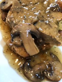- Now make the gravy add the mushrooms and garlic with a splash of the vegetable broth. Cook for a few minutes sprinkle with a bit of salt and pepper. Cook until soft and a bit brown. Remove the mushrooms from the pan and set aside.